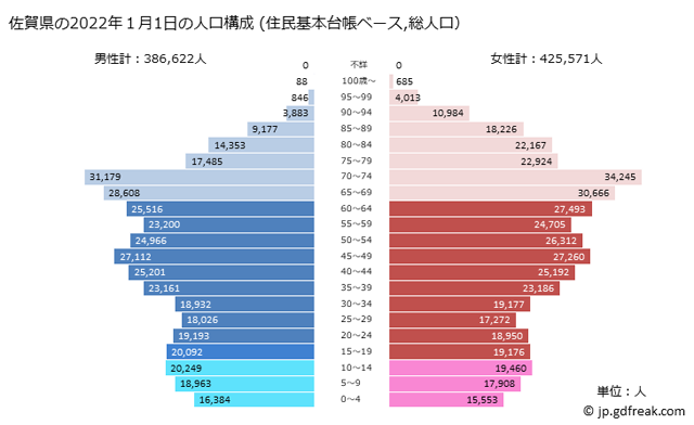 ・出生率が高く、自然増の幅が大きい佐賀県では、人口の急減は起きていない。それでも全体的に少しずつ人口は減少しており、高齢化率も全国平均を若干上回る。佐賀生まれの若者が能力を生かせる職場の創出や誘致が課題と言える。